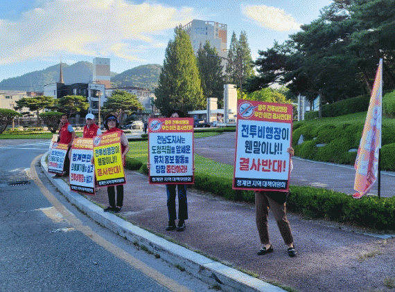 나종천 청계면이장협의회장은 “무안군의 거듭된 군 공항 이전 불가 입장 표명에도 불구하고 여론몰이 홍보를 계속하며, 군민의 갈등을 조장하는 처사를 더 이상 두고 볼 수 없으며 끝까지 무안 이전을 막아내겠다”고 말했다.