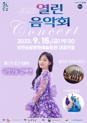 김산 무안군수는 “대중에게 잘 알려진 아티스트와 오케스트라의 아름다운 하모니를 감상할 수 있는 자리를 마련했으니 이번 공연을 통해 지친 일상 속 스트레스를 해소하고 활력을 되찾는 계기가 되길 바란다”며 “문화예술을 사랑하시는 군민들의 많은 관심과 참여 바란다”고 말했다.