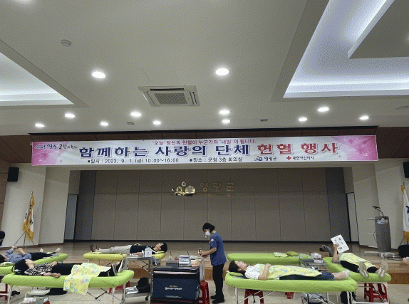 이번 헌혈은 여름철 학교방학 및 휴가철로 혈액수급이 급격히 감소 하는 시기에 혈액수급 부족을 해소하고자 마련됐으며, 군 산하 공직자, 유관기관.사회단체 임직원, 주민 등 100여 명이 참여했다.