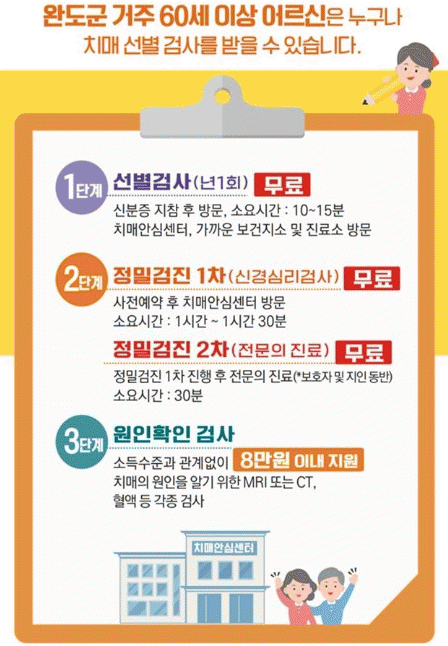 인지 선별 검사 결과, 인지 저하 의심군에 대해서는 진단 검사 후 감별 검사를 진행하게 되며 비용은 무료이다.