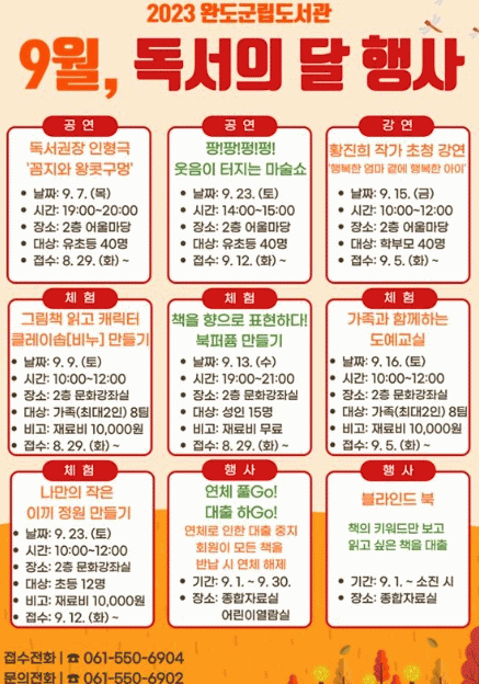 한지영 문화예술과장은 “독서의 달 행사를 계기로 군민들이 도서관과 더욱 가까워지고 독서의 즐거움을 발견하는 기회가 되길 바란다”라고 말했다.
