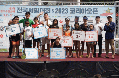 코리아오픈으로 치러진 이번 대회에서 고흥군 서핑협회 소속 김도현 선수가 2023 코리아오픈 ‘남자 롱보드 오픈부 3위’에 입상했고, 지난 5월 부산에서 개최된 코리아오픈에서도 3위에 입상했다.
