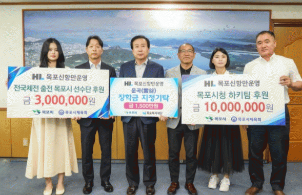 먼저, 목포신항만운영(주)은 지난 4일 목포시청 하키팀 및 전국체전 출전 목포시 선수단 지원을 위한 후원금 1,300만원을 목포시 체육회에 지정 기탁했다.