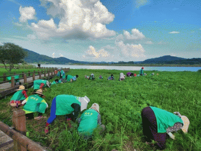 60여 명의 회원들은 이날 오후 3시부터 약 3시간 동안 식영정 일대에서 지난 8월 초에 파종한 코스모스가 잘 자랄 수 있도록 잡초를 제거하고 갈대를 뽑는 작업을 함께했다.