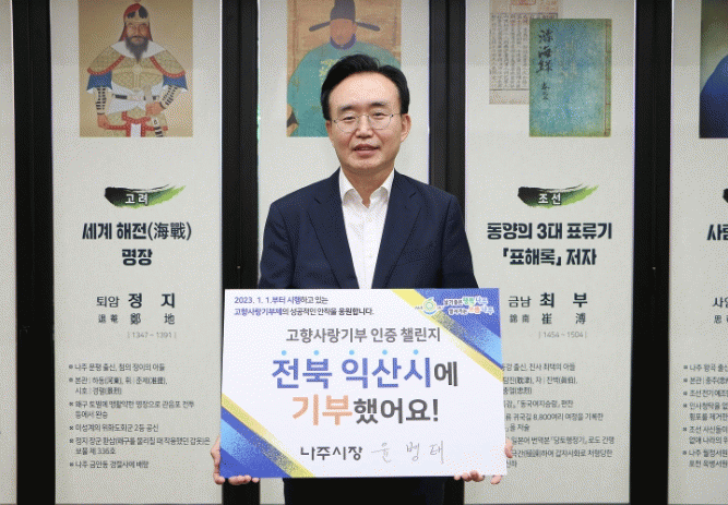 전라남도 나주시는 윤병태 나주시장이 고향사랑기부제의 성공적 안착과 기부 확산을 위한 ‘고향사랑기부 인증 챌린지’ 주자로 나섰다고 6일 밝혔다.