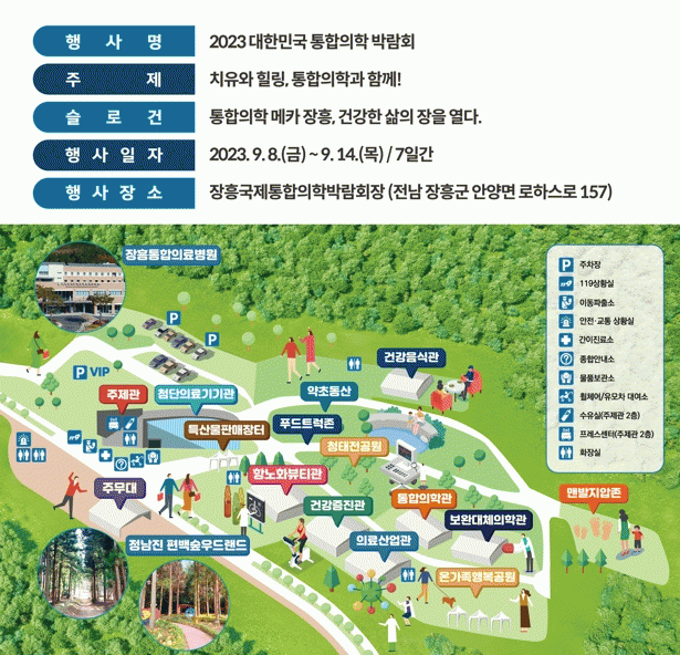 이상심 전남도 보건복지국장은 “코로나19 일상회복으로 처음 맞는 통합의학박람회가 치유와 힐링 박람회가 될 수 있도록 프로그램을 대폭 강화했다”며 “많은 관람객들이 이번 박람회를 통해 건강도 점검하고 체험활동을 즐기길 바란다”고 말했다.