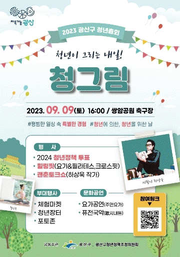 올해 세 번째 맞는 광산구 청년총회에서는 △2024 정책의제 투표 △‘힐링핏’(힐링요가&필라테스, 크로스핏) △괜춘토크쇼(이야기 공연) △체험마켓(장터) 등을 운영한다.