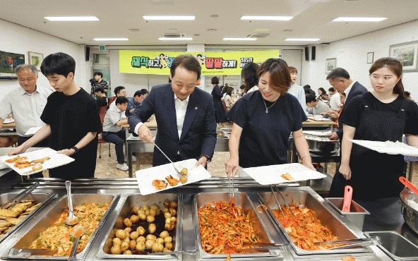 이날 동구는 전 직원을 대상으로 ‘채식하고, 계단타고, 팔팔하게!’라는 슬로건을 내걸고 ▲출·퇴근시 계단 이용하기 ▲채식 메뉴로 점심 식단 구성하기 등 기후변화 대응에 따른 공동행동을 실천하며 구성원들의 호응을 이끌어냈다.