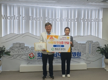 군 보건소는 매년 동절기, 하절기 연 2회 헌혈 행사를 하고, 2021년부터 매년 헌혈증서를 모아 수혈이 필요한 환우들을 위해 화순전남대학교병원에 전달하고 있다. 올해까지 총 500매를 전달했다.
