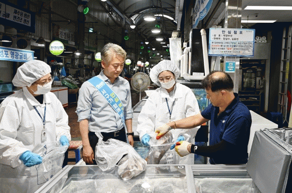 김 청장은 이날 양동수산시장과 건어물시장 등을 방문해 상인들을 격려하는 한편, 시민들에게 안전한 먹거리를 제공하기 위해 보건소 관계자들과 함께 ▲유통 수산물 수거 검사 의뢰 ▲수산물 원산지 표시점검 등을 진행했다.
