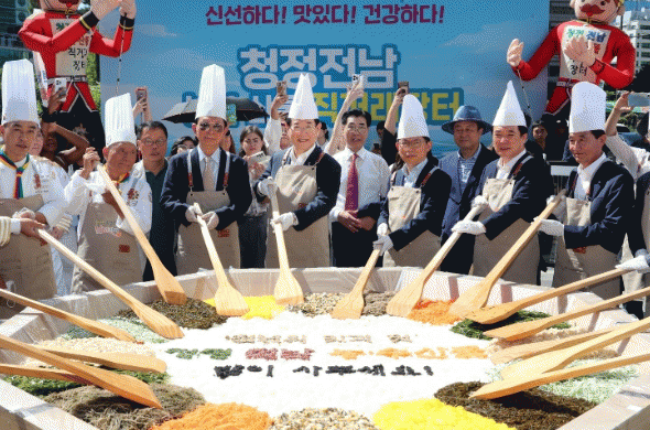 특히 이번 행사에는 김영록 전남도지사, 농수산업 생산·유통 관계자들, 한식 명장들로 이뤄진 (사)대한민국한식포럼 회원들은 전남 22개 시군에서 생산된 쌀과 농수산물로 만든 비빔밥을 만들어 시식하며 전남 농수산물을 적극 홍보하고 판촉에 힘을 보탰다.