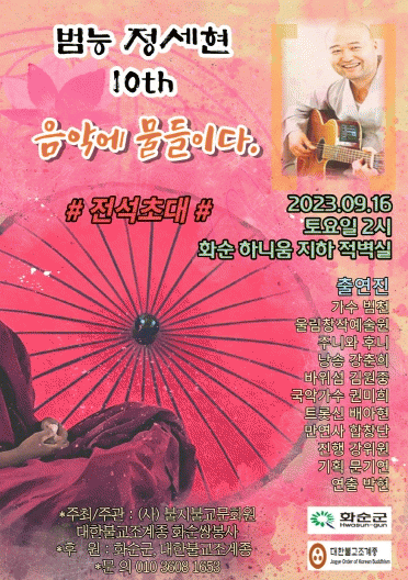이번 음악회는 사단법인 불지불교문화원, 쌍봉사, 송광사에서 주최하고 화순군에서 후원한다.