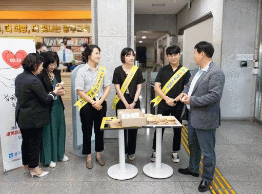 10일 시교육청에 따르면 이번 캠페인은 광주광역정신건강복지센터 부설 광주자살예방센터와 합동해 진행됐다. 캠페인을 통해 자살예방 리플릿, 현수막, 피켓 등으로 사람들에게 생명의 소중함을 알리고 함께 공감하는 시간을 가졌다.