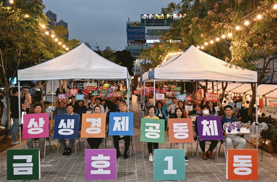 금호1동 주민자치회는 금호1동 먹자골목에서만 사용할 수 있는 전용 상품권 형태로 마을 화폐를 발행해 지역 상권과 주민참여 축제가 상생하는 방안을 마련했다. 또 상품권 수익 중 10%와 이날 축제 유료 체험활동 수익금을 금호1동에 거주하는 사회적 약자를 위해 기부하기로 하며 골목 상권과 주민 그리고 사회적 약자가 함께 살아가는 마을 브랜드인 상생의 정신을 구현해 냈다.