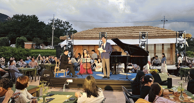 ‘茶정한 밤’ 음악회는 클래식 공연에 새로운 바람을 일으키고 있는 김이곤 감독이 진행을 맡았다. 이한영 생가 마당 곳곳에 마련된 찻자리에서 관객들은 차의 색향미를 느끼며 바이올린 김정수, 첼로 안소연, 피아노 방기수 등 3인의 열정적 연주를 감상했다.
