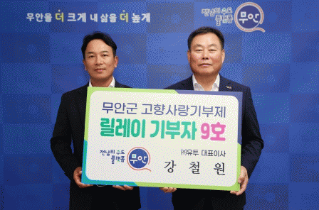 김산 무안군수는 “무안군에 보내주신 두 분의 응원과 기부에 깊이 감사드린다”며 “기부자들의 따뜻한 마음을 담아 무안의 미래를 위한 기금사업을 적극 발굴하고 잘사는 무안을 만들어 그 마음에 보답하겠다”고 말했다.