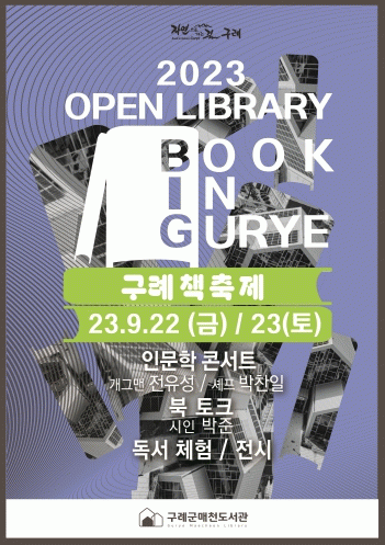 군은‘Open Library B.I.G. (book in gurye)’라는 주제로 성인부터 아이까지 마음을 열고 축제를 즐길 수 있도록 인문학콘서트, 인형극, 북토크, 음악 공연, 작품전시, 독서 체험 부스 등 다채로운 프로그램을 마련했다.