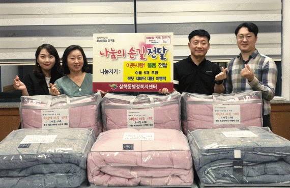 기탁된 이불은 복지사각지대 및 사례관리에서 발굴된 저소득 독거노인 6명에게 안부살피기와 병행하여 전달 될 예정이다.