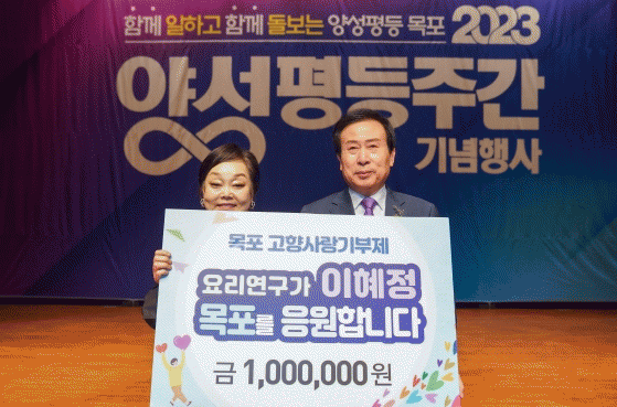 이번 기부는 지난 8일 ”함께 일하고, 함께 돌보는 양성평등 목포”라는 주제로 열린 목포시 2023 양성평등주간 기념행사에서 이뤄졌다. 이날 이혜정 씨는 토크콘서트 강사로 초청됐는데, 목포에 뜻깊은 선물을 하고 싶어해 마련됐다.