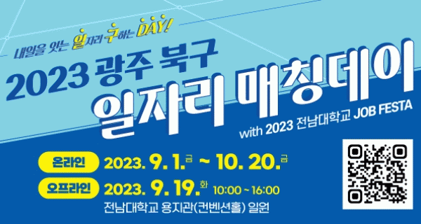 북구 일자리 매칭데이는 지난해에 이어 올해도 온.오프라인 병행으로 진행되며 청년들의 참여 기회 폭을 더욱 넓히기 위해 ‘전남대학교 JOB FESTA’와 연계 추진된다.