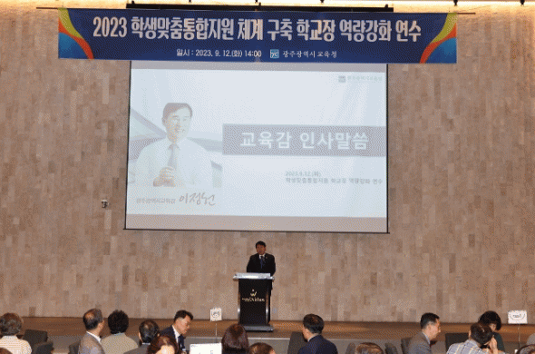 이번 연수는 이번 학기 학생맞춤통합지원 선도학교 시범 운영 시작에 맞춰 진행됐다. 이를 통해 학생맞춤통합지원 체계 확산 및 학교장의 정책 이해도를 높이고자 했다. 동·서부 교육장 및 광주 관내 전체 학교장이 참석한 가운데 교육부 교육복지정책과 박지애 사무관의 강연과 서울방화초등학교 신연옥 교장의 실제 운영사례 소개 등이 진행됐다.