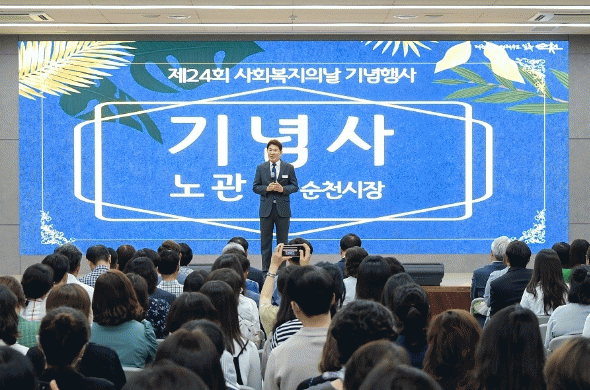 이번 행사는 사회복지의 날에 대한 의미를 새기며 어려운 여건 속에서도 복지증진을 위해 수고하는 사회복지종사자의 활동을 장려하기 위해 마련된 행사로 순천시가 주최하고 순천시지역사회보장협의체가 주관했다.
