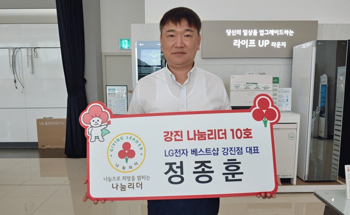 정종훈 대표는 2021년 강진사랑상품권 200만원과 라면 150상자, 2023년 전기매트 20개 (600만원 상당) 기탁을 시작으로 소외된 이웃 사랑을 몸소 실천하고 있다.