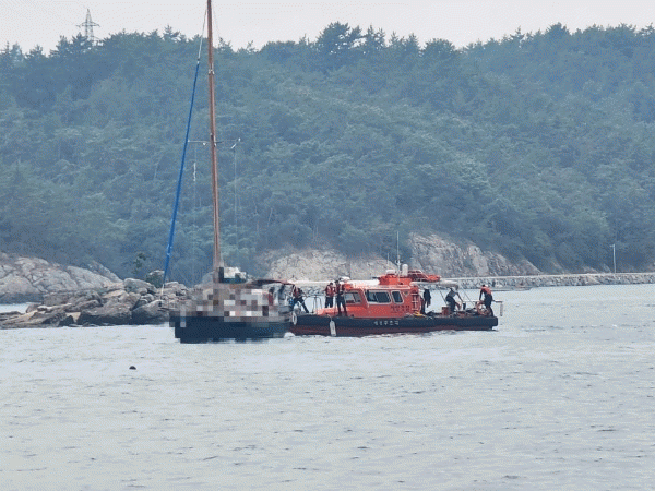 이에 현장에 도착한 경비세력은 승선원 안전상태 확보 후, 구조대가 직접 입수하여 요트 선저파공 여부 등 확인 결과, 이상 없어 안전지대로 신속히 이초 작업을 완료했다.