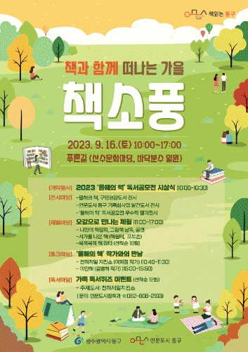 이날 오전 10시부터 개막 행사로 ‘2023 올해의 책’ 독서공모전 시상식을 갖고, 이후 오후 5시까지 전시·체험·토크·독서마당을 테마로 하는 다채로운 행사가 진행될 예정이다.