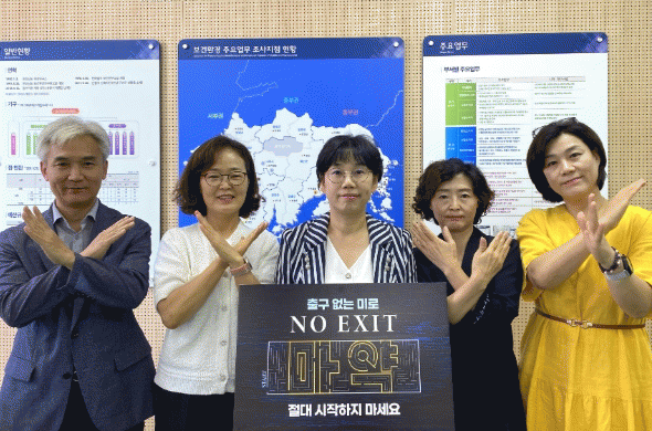 ‘노 엑시트(NO EXIT)’ 캠페인은 최근 국내에서 마약의 심각성이 증가함에 따라 경찰청과 마약 퇴치운동본부가 주관해 연쇄적으로 실시하고 있다. 마약중독 위험성을 전 국민에게 알려 경각심을 주고, 마약범죄를 사전 예방하기 위한 것이다.