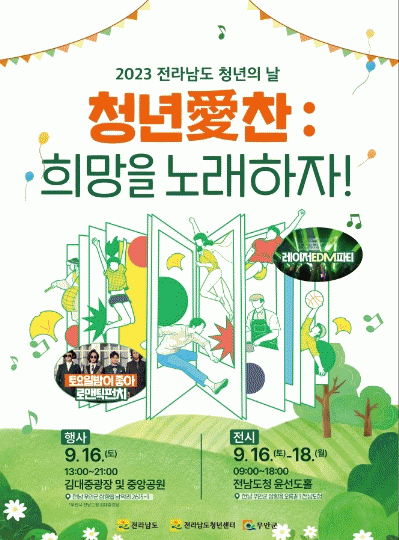오종우 전남도 인구청년정책관은 “청년의 날을 통해 청년을 비롯한 모든 세대가 청년 문제에 공감하는 계기가 되길 바란다”며 “지속적인 의견 수렴을 통해 전남 청년에게 힘이 되는 정책을 만들겠다”고 말했다.