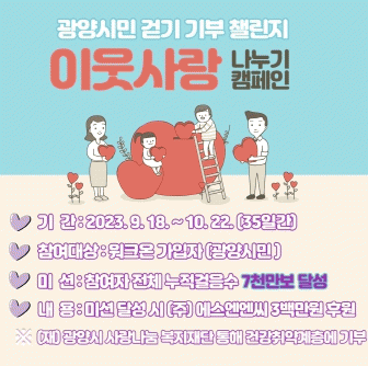 이번 챌린지는 ㈜에스엔엔씨 3백만원 후원으로 추진되며 목표 달성 시 (재)광양시사랑나눔복지재단을 통해 건강 취약계층에 후원금이 기부될 예정이다.