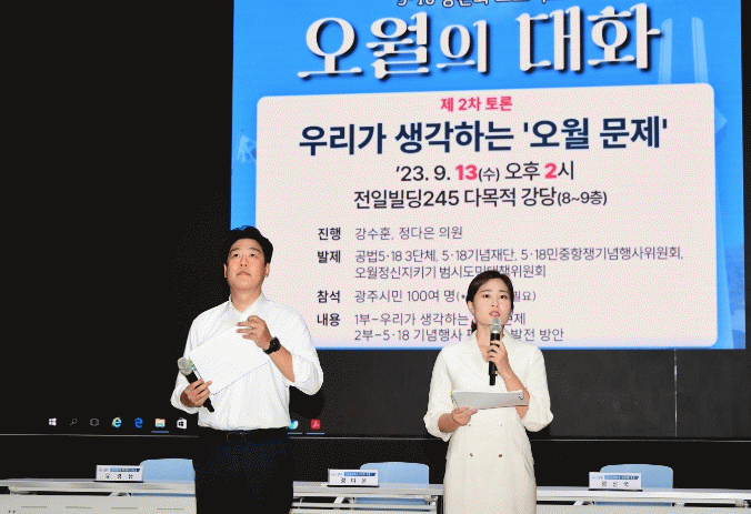 1부에서 먼저 발제에 나선 오월정신지키기 범시도민 대책위원회 장세레나 상임대표는 “5월 문제가 정치적 상황에 따른 왜곡과 폄훼가 상존하고 오월과 관련한 책임 있는 기관의 역할이 부재”라고 진단하고 “이번 토론회와 같은 공론의 장을 적극적으로 활용해야 한다”고 말했다.