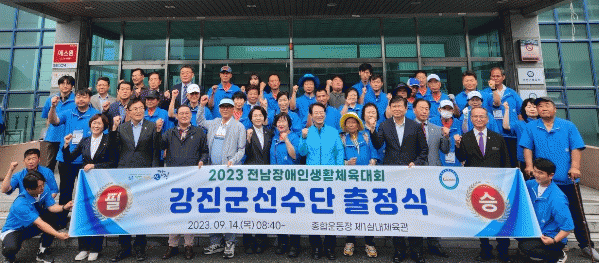 14일 강진군 제1실내체육관에서 열린 출정식에는 강진원 군수(강진군장애인체육회장), 김보미 강진군의회 의장, 이병삼 교육장(강진군장애인체육회 부회장), 노두섭 강진군의회 운영위원장, 정중섭 강진군의회 행정복지위원장, 윤영남 강진군의회 농업경제위원장, 서순선 강진군의회 의원, 김창주 강진군의회 의원, 강진군장애인체육회 임원 및 직원을 비롯해 단체별 회장 및 선수 등 총 150여 명이 자리를 함께하여 대회의 선전을 다짐했다.