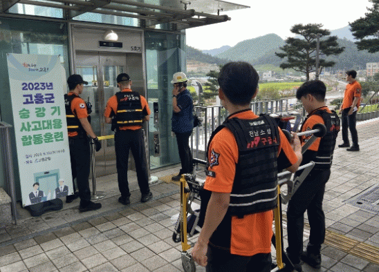 승강기 합동훈련은 현장 중심의 실전 모의훈련을 통해 승강기 사고 또는 고장 시 초기 대응능력을 높여 인명피해를 줄이기 위해 마련됐으며, 고흥군, 고흥소방서, 한국승강기안전공단, 현대엘리베이터 등 관내 유관기관 및 업체 관계자 등의 합동훈련으로 진행됐다.