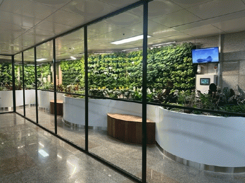 지하철 문화전당역 1~4번 출구에 위치한 ‘문화전당역 실내정원’은 역사 내부라는 특수성을 고려해 공기정화 효과가 입증된 아이비와 산호수 등 26종의 공기정화식물 6천여 본이 식재돼 있다.