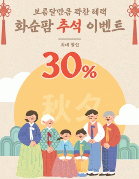 현재 화순 팜에서는 9월 27일까지 추석 이벤트를 진행 중이며, 전상품 20% 할인 쿠폰(최대 3만 원)과 100만 원 이상 구매자에게 10% 추가 할인 쿠폰을 지급하고, 신규회원에게는 1,000원 할인 쿠폰을 추가 지급한다.