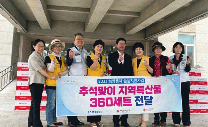 추석맞이 지역특산물 세트 전달은 삼성에서 후원해 희망풍차 물품지원사업으로 추진됐다. 후원 물품은 지역특산물 ▲백미 3kg ▲잡곡 1kg ▲미역 100g ▲조미김 1팩(16개입) ▲건표고버섯 100g 등 식료품으로 구성됐다.