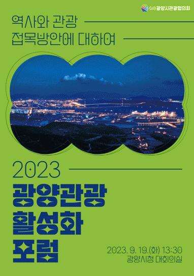 ‘광양관광 활성화 포럼’은 광양관광에 관심있는 사람이면 누구나 참석 가능하며, 기타 자세한 사항은 광양시관광협의회로 문의하면 된다.