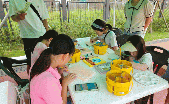 이날 체험전에는 △ 조상들의 숨결이 담긴 문인화 △ 습식수채화로 색상환 그리기 △ 셀프 인생 사진 △ 레진 공예 액세서리 제작 △ 탄소중립 실천을 위한 손수건 만들기 △ AI 드로잉 △ 색으로 만나는 천연염색 등 정통부터 디지털 미술까지 18개 체험 부스가 운영됐다.