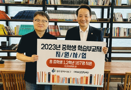 [뉴스맘]광주 동구는 관내 저소득 가정 중학생들의 학력 증진을 위해 (재)보성장학재단이 학습 교재 1천 권(2천만 원 상당)을 후원하며 아이들의 꿈과 희망을 응원했다고 밝혔다.
