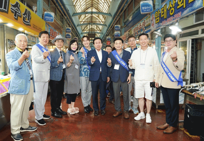 이날, 동부?자유?청호·종합수산시장 상인회에서는 환영 인사와 함께 전통시장 이미지 제고와 매출 증대를 위해 사전에 다양한 품목의 구매상품 준비, 친절 교육 및 시장 주변 환경을 정비했다.