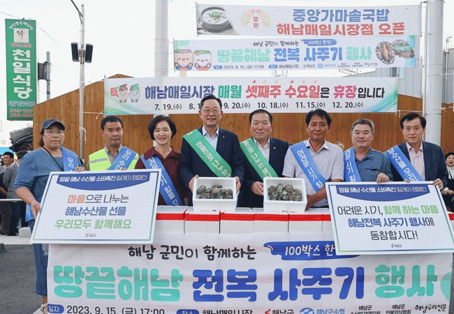 한편 해남군은 관내 수산물 유통 활성화를 위해 지난 4월 수산물 유통 활성화 계획을 수립, 해남 수산물을 홍보와 소비촉진을 적극 추진해 오고 있다. 최근 경기도와 수산물 판촉 방안에 대해 논의한데 이어 경기 안양시와 연계한 전복 판매도 추진하고 있다.