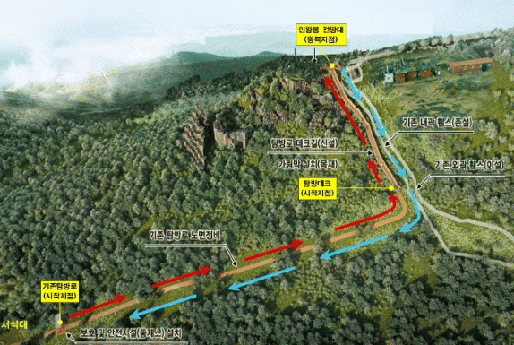 상시개방 코스는 서석대 주상절리에서 부대 후문 옆을 지나 인왕봉 전망대까지 갔다가 다시 내려가는 왕복코스로 약 390m이며, 탐방로 폭은 1.8m로 탐방객들의 교행이 가능하도록 했다.