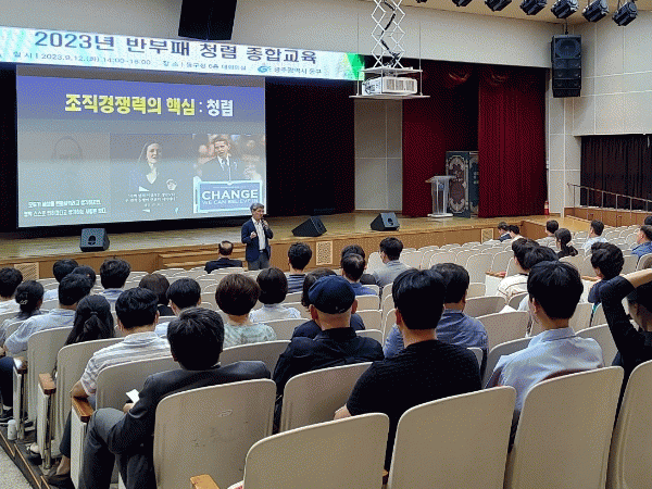한편 동구는 지난 7월 26일 퀴즈 서바이벌 형식의 ‘도전! 청렴 스마트 골든벨’을 개최한 데 이어 청렴연수원 청렴 전문 강사가 진행하는 ‘조직경쟁력의 핵심:청렴’ 등 다양한 교육 프로그램으로 ‘빛고을 청렴 1번지 동구’ 달성을 위한 잰걸음을 이어가고 있다.