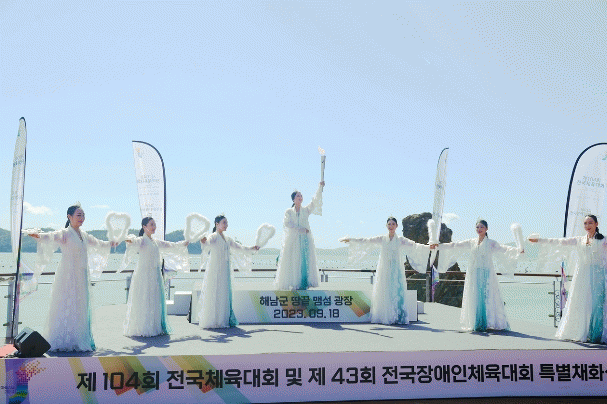 전라남도와 해남군은 18일 해남군 땅끝마을 맴섬광장에서 제104회 전국체전·제43회 전국장애인체전의 성화 채화식을 가졌다.