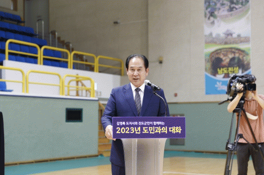 김희수 진도군수의 환영사에 이어 김영록 도지사는 진도군민들과 소통 행정 실현을 위해 민선 8기 도정 운영 방향을 제시하고 진도군민의 애로사항과 건의사항 등 다양한 의견을 청취했다.