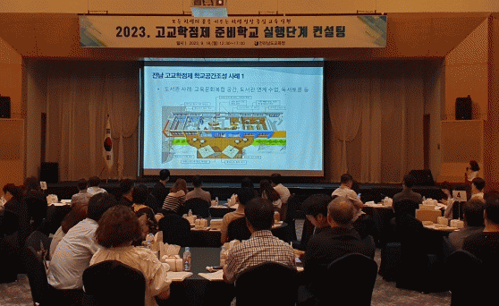 전라남도교육청은 9월 18일 영암바이라한호텔에서 서부권 일반계고 45교 교감 및 업무 담당자 90명을 대상으로 ‘2023학년도 고교학점제 준비학교 계획단계 컨설팅’을 가졌다.