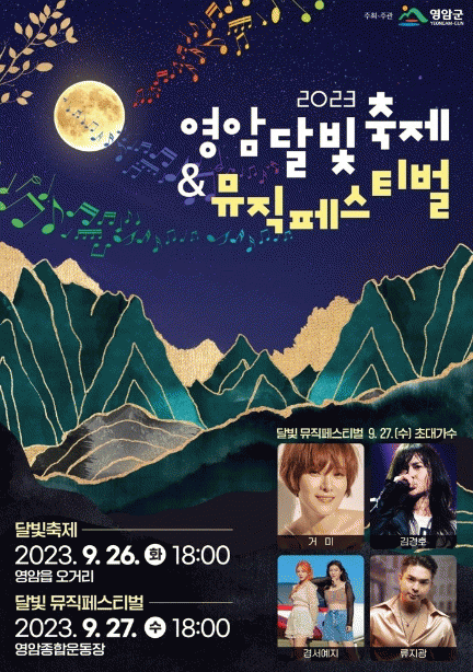 축제 이튿날인 27일에는 영암종합운동장 일대에서 ‘달빛가요제’ ‘초대가수 축하콘서트’ 등으로 꾸며진 ‘달빛 뮤직 페스티벌’이 개최된다.