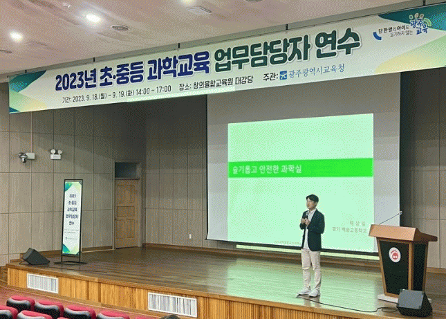 한편 이번 연수에서는 과학실험실 안전 관리에 대한 교육도 같이 이뤄졌다. 안전한 과학 수업 환경조성을 위한 법정 관리 대장의 작성 및 운영 요령, 실험 중 안전사고 대처 방안이 안내됐다. 또 과학 담당 교사들의 안전 관리 역량을 높일 수 있도록 강의를 구성해 학교 현장에서 많은 호응을 얻었다.